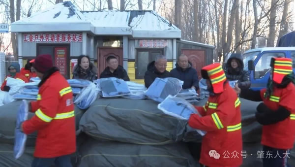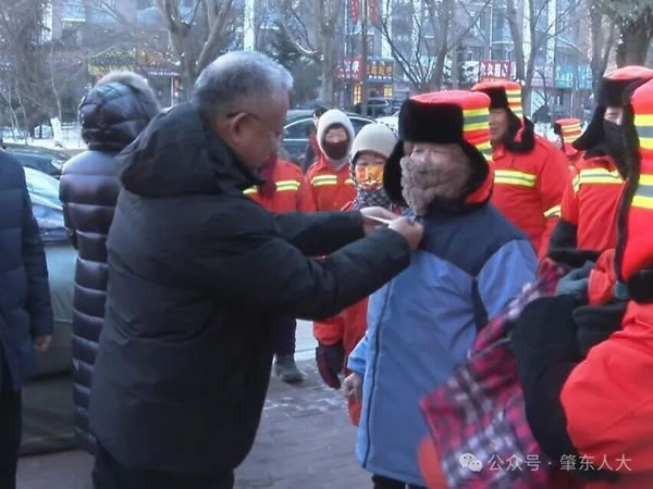 櫛風(fēng)沐雨,堅守初心。環(huán)衛(wèi)工人作為美麗肇東的建設(shè)者與守護(hù)者,常年頂風(fēng)冒雪、披星戴月,用汗水擦亮城市顏值,用堅守詮釋責(zé)任擔(dān)當(dāng)。此次愛心捐贈活動,既是市人大代表踐行“人民選我當(dāng)代表,我當(dāng)代表為人民”履職承諾的生動實踐,更是社會各界關(guān)愛基層勞動者、傳遞文明溫度的具體體現(xiàn)。一件件御寒棉服,不僅為環(huán)衛(wèi)工人抵御了冬日嚴(yán)寒,更凝聚起守望相助的社會正能量,讓“奉獻(xiàn)、友愛、互助、進(jìn)步”的文明風(fēng)尚在寒日里熠熠生輝。
