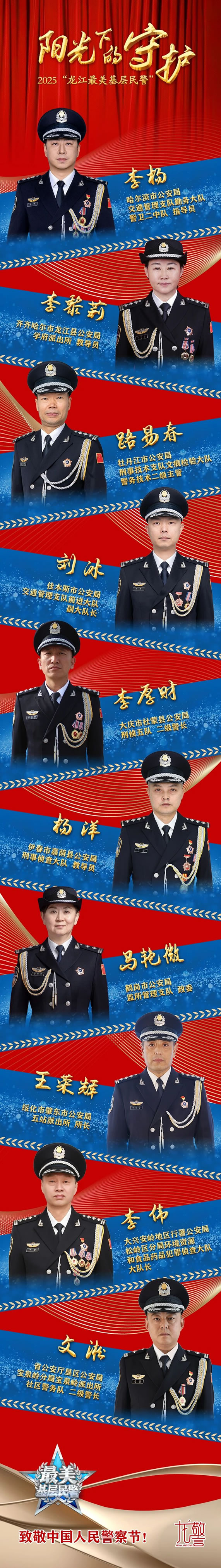 為全面貫徹落實黨的二十大和二十屆歷次全會精神,深入貫徹落實省委、省政府和公安部各項決策部署,深入踐行“四先”理念、全面錘煉“六大能力”,不斷弘揚新時代“楓橋經(jīng)驗”,充分發(fā)揮先進典型正向激勵和示范帶動作用,教育引導廣大公安民警在新時代新征程上展現(xiàn)新?lián)斝伦鳛椤V泄埠邶埥∥麄鞑、黑龍江省公安廳聯(lián)合開展了2025“龍江最美基層民警”學習宣傳活動,經(jīng)過各地推薦、資格審核、集中評審、事跡展示,決定授予李楊等10名同志2025“龍江最美基層民警”稱號。