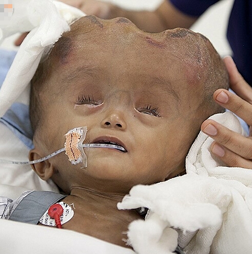 印度患腦積水女?huà)胧中g(shù)后頭圍縮小 術(shù)前如外星人(1)