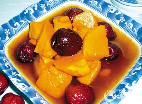 紅薯500克,紅棗10克,紅糖適量,清水2000毫升,一起下鍋煮開,紅薯熟透后再加紅糖調(diào)味。喜歡吃南瓜的也可以把紅薯換成南瓜。