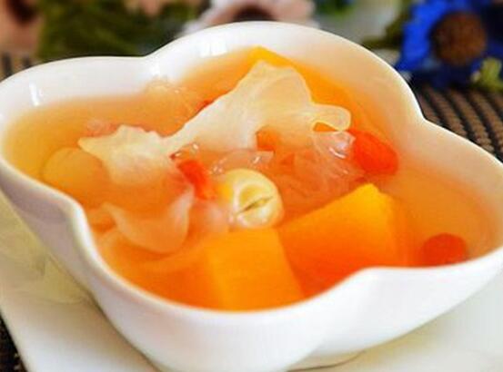 將銀耳、桂圓干、枸杞、紅棗洗凈,放入鍋內(nèi)加水熬湯,起鍋前加入冰糖調(diào)味。此款湯品不僅能豐胸,還能使你的臉色白里透紅,體態(tài)輕盈苗條。