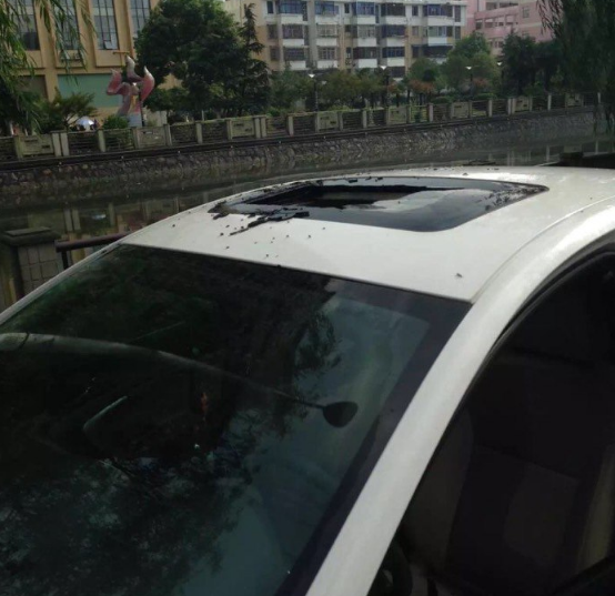 在一個(gè)雷電交加的日子里,無錫有一位車主像往常一樣,去小區(qū)附近停車的地方取車。走到愛車旁邊的那一刻,車主整個(gè)人驚呆了!天窗的地方竟被劈了一個(gè)大窟窿。