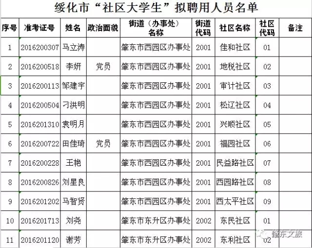 綏化市(肇東)“社區(qū)大學生”擬聘用人員公示