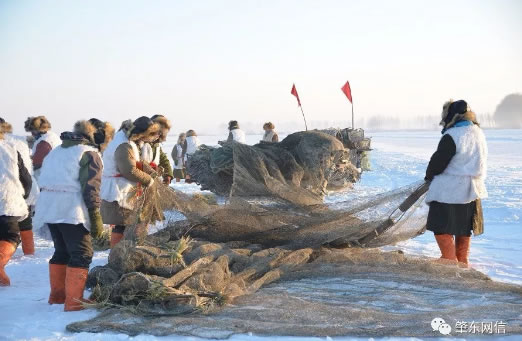 大似海有個(gè)古老的蒙古名,叫烏珠古爾泊,意為最南端尖狀湖。大似海曾經(jīng)是郭爾羅斯先民游牧封地,當(dāng)時(shí)的漁民用魚叉、魚鉤和魚亮子等工具捕魚。勤勞智慧的東北漁民不斷發(fā)明創(chuàng)造,逐步演變成今天這種多片連接的巨型冬網(wǎng),長(zhǎng)期實(shí)踐活動(dòng)形成了一整套的冬捕技巧和特有的祭祀風(fēng)俗,蘊(yùn)含和散發(fā)出古老漁獵文化的非凡魅力。冬捕對(duì)于當(dāng)?shù)氐木用駚碚f,不僅僅是捕魚也是一種獨(dú)特的生活方式,寄托著他們的歡樂以及對(duì)美好生活的向往和希望。
