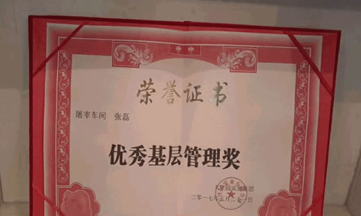 2014年張磊同志多次獲得技術(shù)能手稱號(hào),所帶領(lǐng)的班組榮獲“學(xué)雷鋒標(biāo)兵班組”; 2016年4月榮獲“肇東市勞動(dòng)模范”稱號(hào);2016年9月在北京市舉辦的分割技能大賽中獲得“第一名”;所在班組多次被評(píng)為先進(jìn)班組;2017年獲得“龍江工匠”稱號(hào);2018年4月榮獲“綏化市勞動(dòng)模范”稱號(hào);2018年5月榮獲全市“十佳青年崗位能手”稱號(hào)。