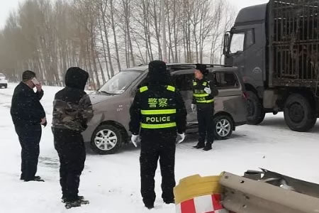 近日,肇東市開發(fā)區(qū)金都養(yǎng)雞場附近因雪天路滑,一輛白色面包車側翻在路邊。接到報警后,交警大隊巡警五中隊中隊長栗平泉立即帶領民警趕到現(xiàn)場,發(fā)現(xiàn)車輛駕駛員因驚嚇引起身體不適。現(xiàn)場民警果斷處置,一邊疏導交通,設置隔離帶,指派專門警力駐守;一邊" />