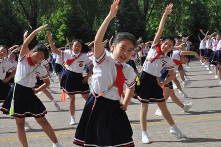 “古詩韻律操”是采用學(xué)生一邊吟誦經(jīng)典古詩詞,一邊做韻律操的形式,通過選取學(xué)生必背古詩詞22首加上動作形成古詩韻律操,并不定期更換內(nèi)容,將古詩詞誦讀和韻律操相結(jié)合編排,演繹經(jīng)典古詩詞的韻律,做到“以操促德、以操輔知、以操健體、以操審美”。隨著優(yōu)美的經(jīng)典樂曲,和著耳熟能詳?shù)墓旁,孩子們嫻熟地做著韻律體操,動作如舞蹈一般,時而輕盈、時而剛勁、時而堅定、時而歡快,一招一式都將音樂、詩韻融入其中,完美展示出古詩韻律操的獨特魅力,切實達(dá)到了提高學(xué)生綜合素質(zhì)的目的。