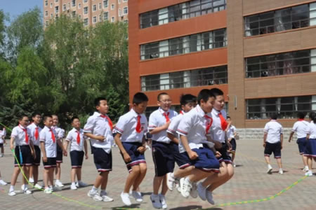 “跳繩”是該校體育工作的一大特色,做到了人人有跳繩,個個有花樣、班班有特色。由于此項運動不受年齡限制,是一項強健心臟、有益增高的運動,又能鍛煉學(xué)生的彈跳力、節(jié)奏感和協(xié)調(diào)性,非常受學(xué)生們歡迎。有長繩和短繩,有速度跳和花樣跳,有單人跳和多人跳,多人集體跳繩等形式,既讓孩子們在跳繩中,展示自我、愉悅身心、享受童年的朝氣蓬勃,更進(jìn)一步增強了學(xué)生集體榮譽感及培養(yǎng)出合作精神。