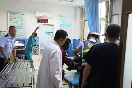 “快,坐上車,跟我們走,我們護(hù)送你們?nèi)メt(yī)院”。一路上,從肇四路高速南橋到市人民醫(yī)院,通過警車帶路,警燈警示,及時(shí)繞過車多擁堵路段,僅僅5分鐘就到達(dá)醫(yī)院急診室。于達(dá)和隊(duì)員幫助家屬將病人從車內(nèi)抬到急診室。由于病人家屬來不及停放車輛,民警將其駛停于醫(yī)院停車點(diǎn),避免車輛阻礙交通。