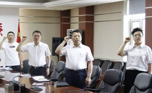 黨日活動(dòng)中,與會(huì)黨員首先全體起立,面對(duì)黨旗進(jìn)行莊嚴(yán)宣誓,重溫了入黨誓詞。