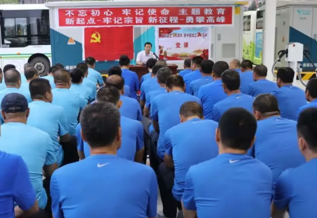 為進(jìn)一步深入學(xué)習(xí)貫徹黨的十九大精神和習(xí)近平總書記重要講話和重要指示精神,按照市委和市交通運(yùn)輸黨組的統(tǒng)一部署,公汽公司黨支部在新落成的公交新能源充電站舉辦了“不忘初心 牢記使命”主題教育活動,喜迎建黨98周年,為新中國成立70周年獻(xiàn)禮。公司黨支部書記楊維旭以“新起點(diǎn)—牢記使命 新征程—勇攀高峰”為題,為公司全體黨員及優(yōu)勝員工講了一堂專題黨課。