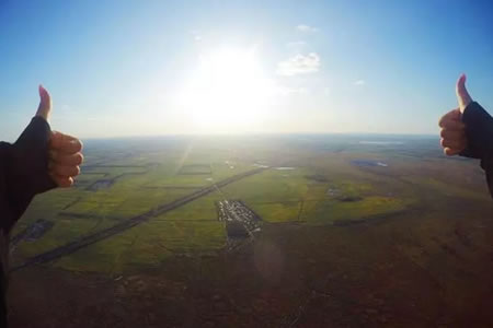 據(jù)了解,俱樂部教練團隊均為有著數(shù)千次跳傘經(jīng)驗及擁有國際認證的《雙人跳傘教練證書》的專業(yè)跳傘教練組成?梢詾楦鞯赜慰吞峁╇p人高空跳傘體驗、單人高空跳傘培訓、單人跳傘等多項跳傘服務。當天上午,有十余名毫無跳傘經(jīng)驗的游客,乘坐“大棕熊100”型飛機,升至3200米高空后,與教練固定在一起,一躍而下,在經(jīng)歷了35秒左右的自由落體運動后,傘包順利打開,俯瞰龍江大地美景,然后安全降落在指定地點。