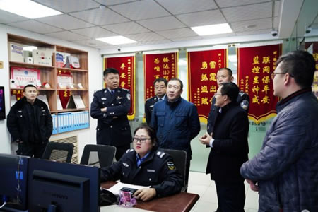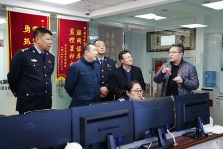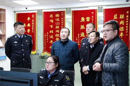 2019年12月4日綏化市公安局黨委委員、副局長(zhǎng)卜啟軍深入肇東檢查指導(dǎo)工作,肇東市公安局局長(zhǎng)張國(guó)輝,副局長(zhǎng)尹德峰陪同一行參觀黑龍江騰達(dá)安泰保安服務(wù)有限公司,對(duì)騰達(dá)公司110視頻聯(lián)網(wǎng)報(bào)警平臺(tái)系統(tǒng)運(yùn)營(yíng),校園安全一鍵報(bào)警系統(tǒng),物聯(lián)網(wǎng)智能安防技術(shù)應(yīng)用,智慧社區(qū)智能門禁人臉識(shí)別系統(tǒng)前沿技術(shù),安防產(chǎn)品及設(shè)施等高度認(rèn)可,詳細(xì)了解騰達(dá)公司110聯(lián)網(wǎng)報(bào)警、校園安全一鍵報(bào)警、人臉識(shí)別智能門禁、智慧小區(qū)社區(qū)綜治管理、視頻大數(shù)據(jù)集中管理、智慧消防電力火災(zāi)預(yù)警等相關(guān)系統(tǒng)平臺(tái)功能及應(yīng)用,并就如何進(jìn)一步加強(qiáng)安防產(chǎn)品推廣和應(yīng)用、社會(huì)資源聯(lián)網(wǎng)、智能化小區(qū)建設(shè)等進(jìn)行深入座談交流,聽(tīng)取安防企業(yè)在整合資源和提升技術(shù)方面的匯報(bào)和建議。他指出,安防建設(shè)是社會(huì)治安防控體系的核心內(nèi)容,是創(chuàng)新社會(huì)管理和服務(wù)民生的重要方式。安防企業(yè)要從戰(zhàn)略性角度出發(fā),依靠政府主導(dǎo)、公安支持、企業(yè)先行,找準(zhǔn)立足點(diǎn),站穩(wěn)出發(fā)點(diǎn),抓住有利機(jī)遇,多方整合社會(huì)資源,加大建設(shè)投入力度,打造具有自身亮點(diǎn)特色的智能化聯(lián)防報(bào)警系統(tǒng)及智慧化安防小區(qū),發(fā)揮維護(hù)穩(wěn)定、保障民生、服務(wù)群眾的重要作用,為平安肇東建設(shè)作出更大貢獻(xiàn)!